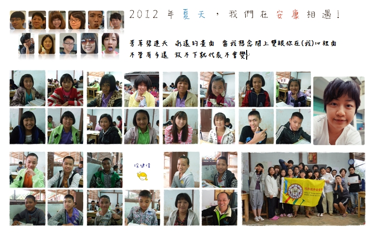 台大國際事務研習社(IAS)的椰情小泰陽服務隊今年已經是第七年到安康村了,去年夏天我和另外10個夥伴(全都是學生)一起去泰北清邁省的華人村(安康村)擔任華語文志工,圖片中的是我負責班級的孩子和老師,這群孩子讀的是六年級,年紀大約13~14歲,和你我認識的青春期孩子一樣有的活潑、有的害羞、有的好學、有的調皮搗蛋,儘管也有吵鬧的時候,但大都貼心可愛。然而,與台灣孩子不一樣的是,即使他們願意讀書,卻不見得有那麼充足的資源。