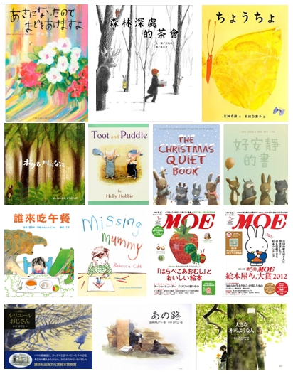 白泉社繪本賞首獎《ちょうちょ》、2012年MOE繪本書店賞冠軍《あさになったのでまどをあけますよ》、水之旅《ボクも、川になって》、好安靜的書耶誕版《The Christmas Quiet Book》...