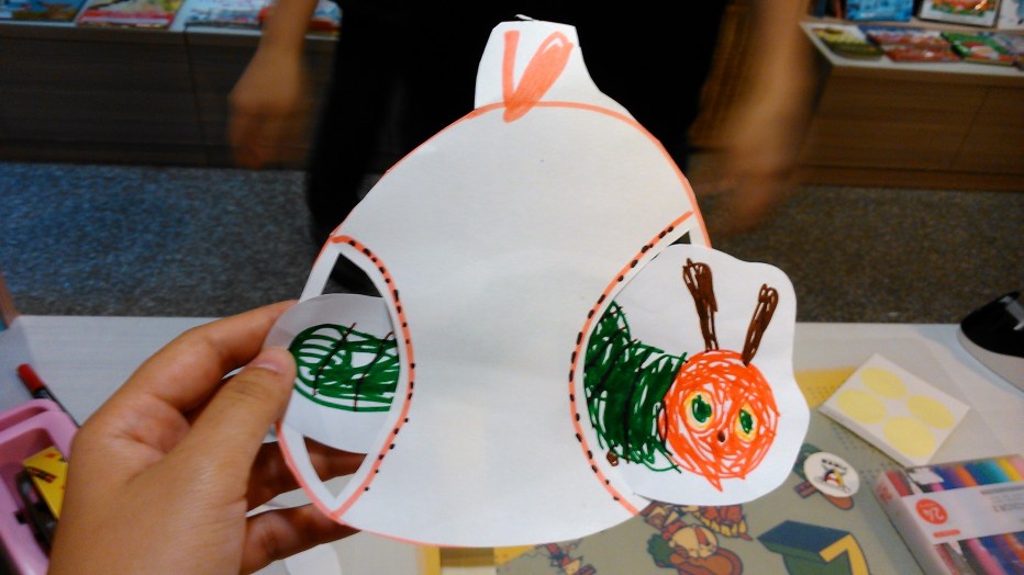 由Kaya本人設計、我幫他剪蘋果洞洞的毛毛蟲!
