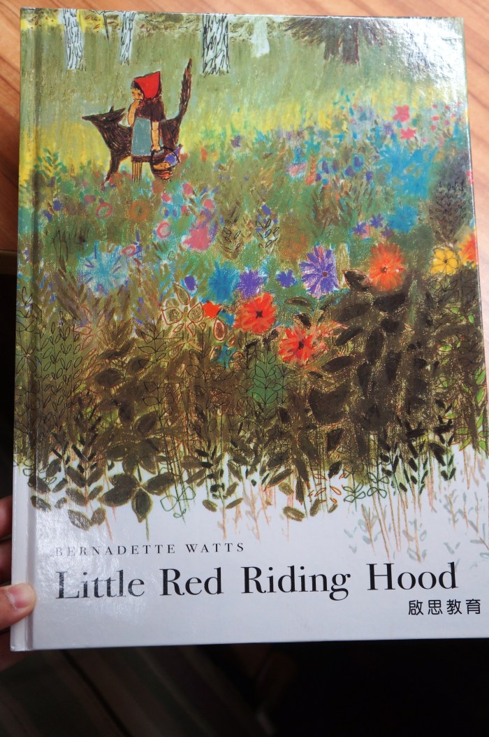 逛二手書店非常有趣,就像尋寶一樣,常常能用非常便宜的價格將絕版好書帶回家,這本《小紅帽 Little Red Riding Hood》是啟思教育出版的,其中一面是中文,另外一面是英文,為了配合翻頁的方向,兩個封面裡有其中一個看起來就像顛倒了,但其實內容是沒有錯的唷!(這本書書況超好,沒有書斑、沒有劃記、沒有蓋章,還不到50塊錢呢!)
