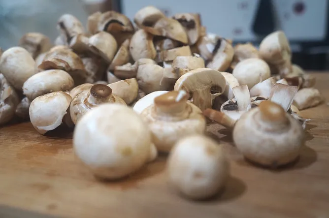 8. 放上先前特別保留的蘑菇增加口感。