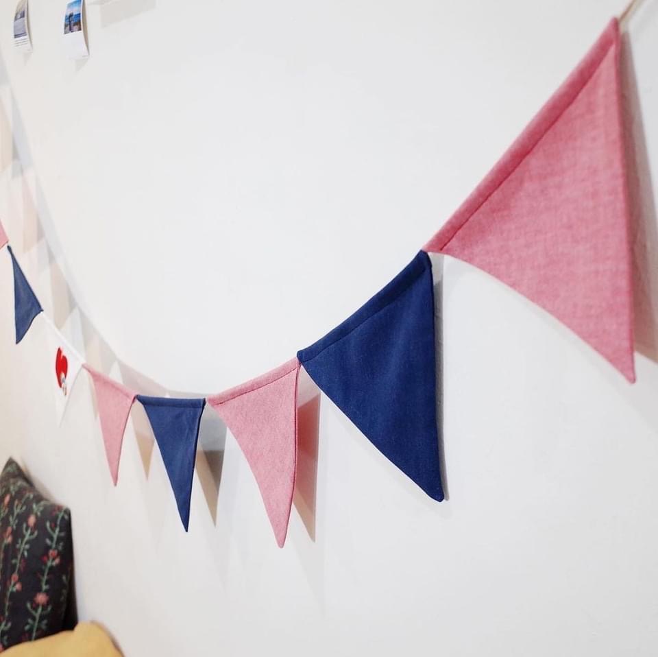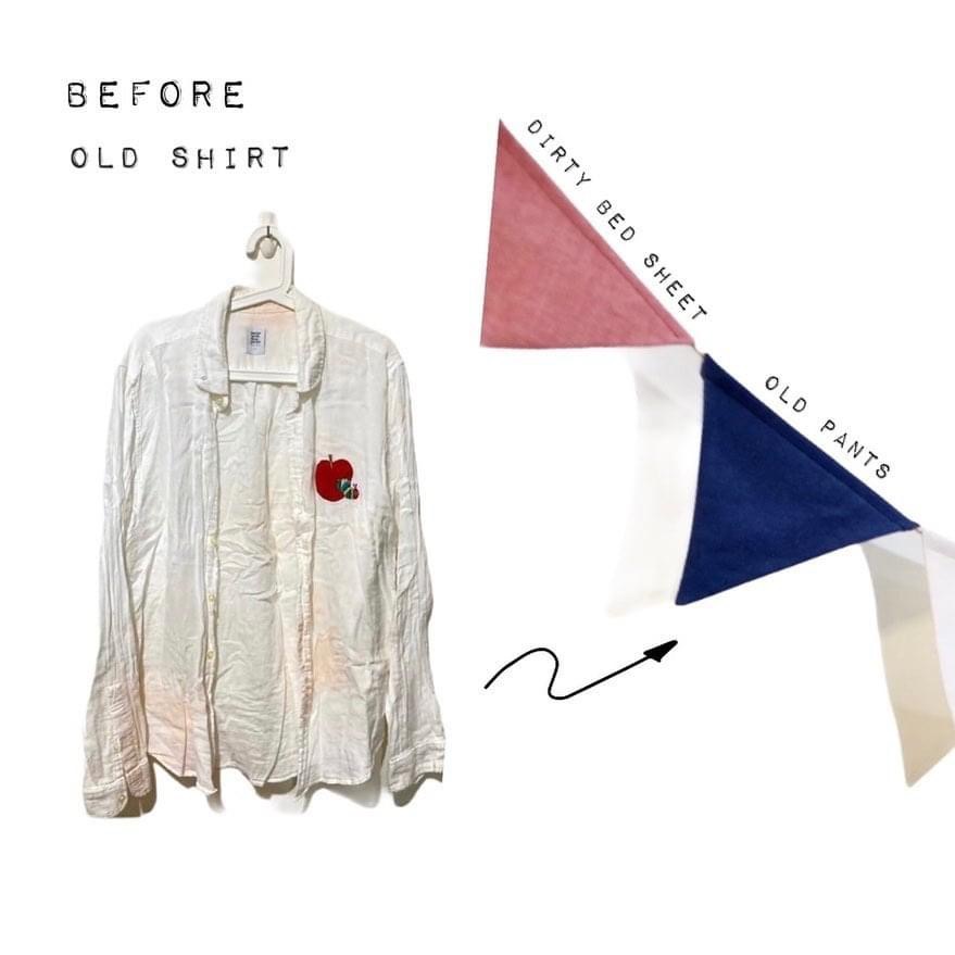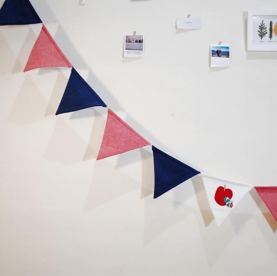 去年冬天,意外看到有間工作室正在接受舊衣改造的申請,便懷著期待的心情與主理人聯繫,在一來一往的信件討論中,毛毛蟲的新生命逐漸成形,芃諭將它結合其他材料製作成十二片三角旗,而且收費十分合理。