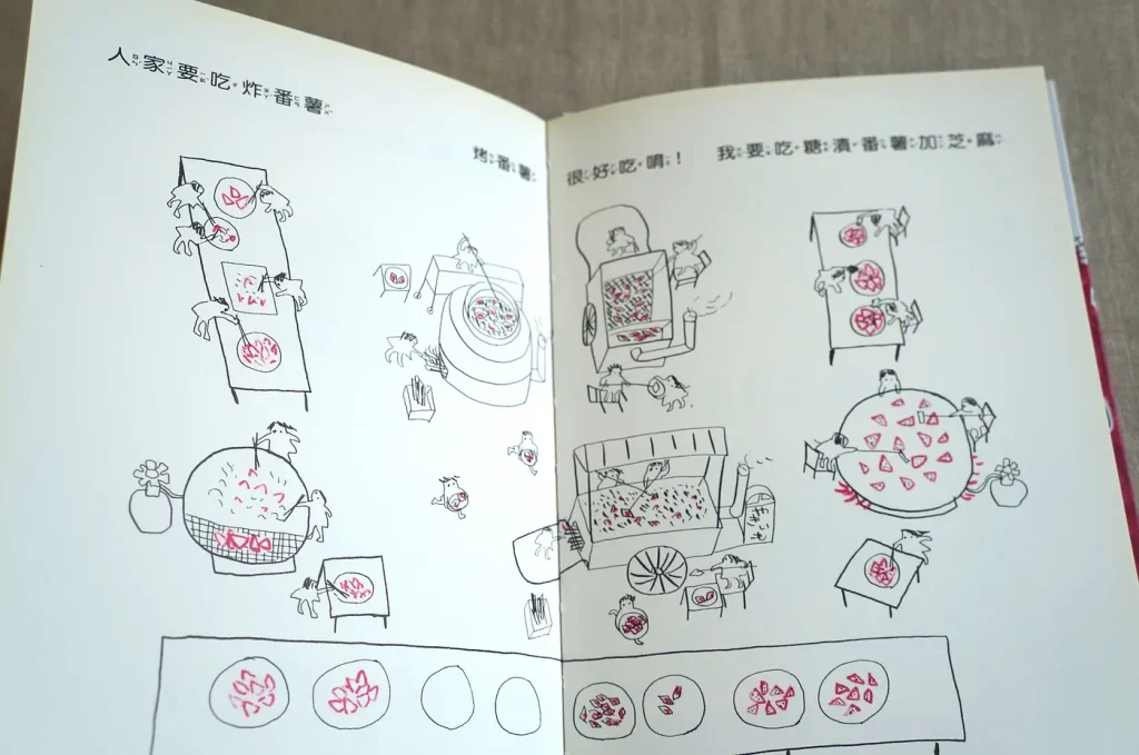 一場突如其來的疫情,打亂了所有人的計畫,就和《好大好大的大番薯》書中那場夜裡下起的大雨一樣,讓藍天幼兒園的孩子沒辦法出門遠足、挖蕃薯了,真掃興!但區區雨水,怎麼能打消孩子們的熱情呢?