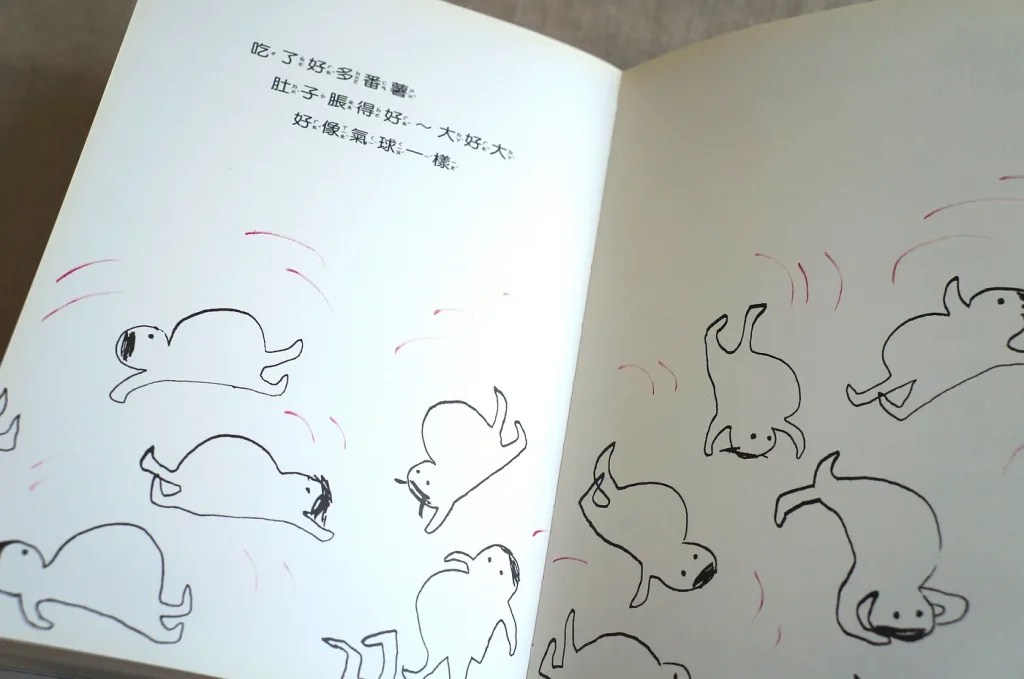肚子裡累積了好多的「氣」,吃得好撐、好撐!薯屁 1 號、薯屁 2 號、薯屁 3 號,一個接著一個發射 — — 通通彈到宇宙去囉!