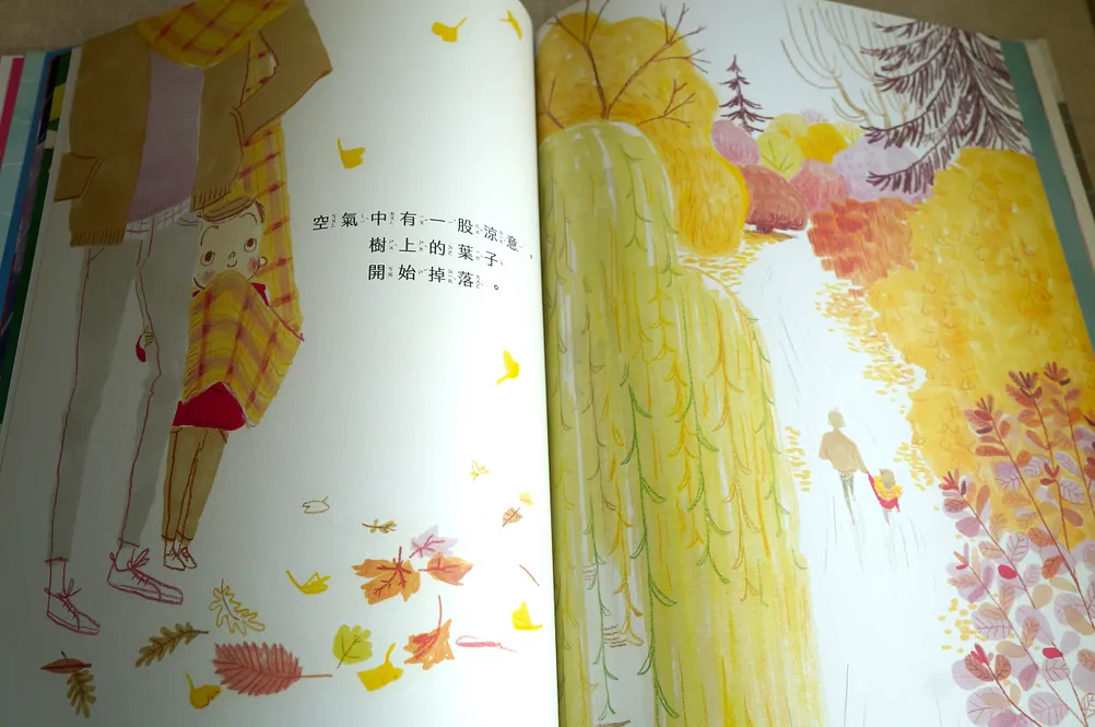 這本書實在太可愛了,從盛夏、金秋到寒冬,展現了不同季節的特色,作者西蒙娜‧希洛羅筆下豐富的色彩,傳神地描繪出季節之間循序漸進的改變,小男孩與家人的互動也好溫馨,時而打鬧、時而依偎,只要有最愛的人在身邊,無論哪個季節,都會是美好日子。