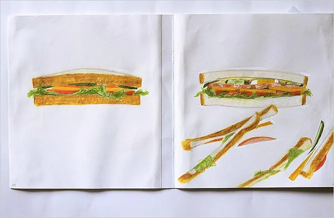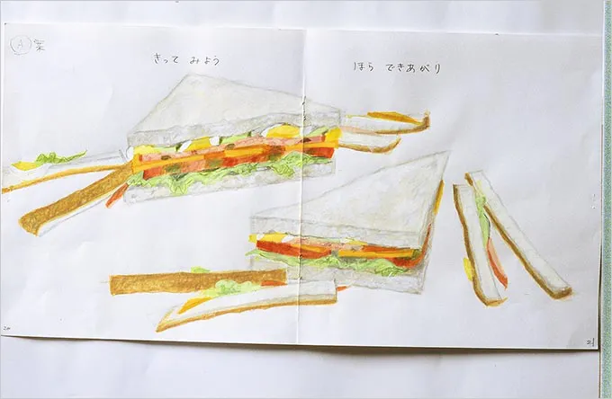 小西英子製作《サンドイッチ サンドイッチ》繪本時的各種封面嘗試