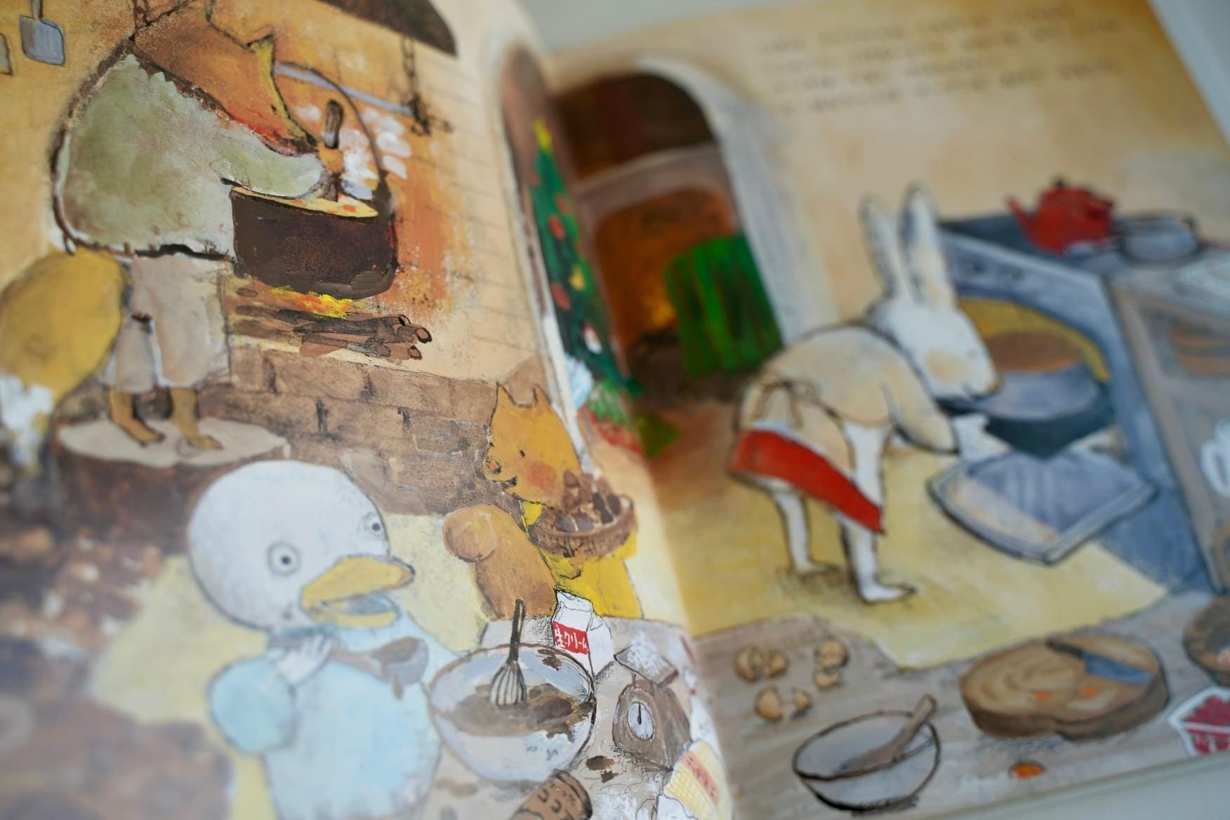 小小的公寓裡沒有位置擺聖誕樹,但還是想要有一點節日的氛圍,於是每到了 12 月,我就會訂聖誕花圈來妝點家裡的牆面,再把所有冬天與耶誕主題的繪本都擺出來,然後邀朋友來家裡聚會,就和田代千里(たしろ ちさと)筆下的小動物一樣。
