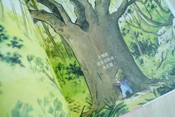 老實說,當小女孩想不出答案,一邊擁抱著樹一邊說出「大橡樹,請你告訴我。我在聽」時,我內心警鈴大作,心想「噢!不~~~拜託不要!」很擔心作者提出的解方會是大樹精靈跳出來說話,或是聽從大自然的神秘力量。