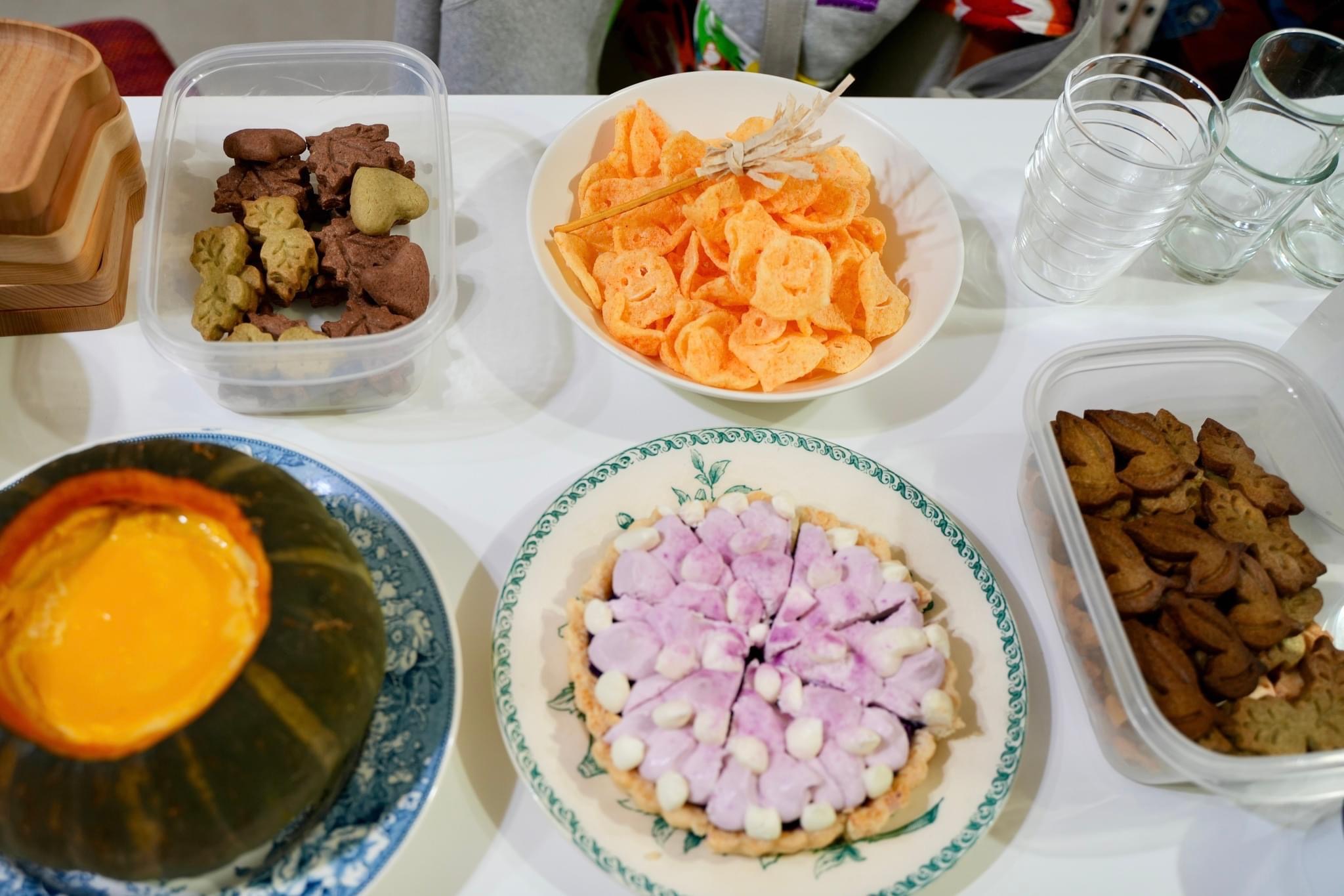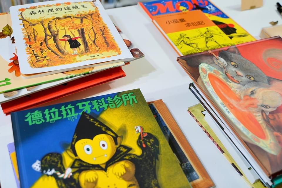 沒有想過這麼臨時發布公告,還是一下子就額滿了,謝謝各位喜愛繪本的朋友們來捧場,以及最可靠的兩位小幫手!(不止 Podcast 錄音,連現場活動也拐來了哈哈哈),當天我們介紹了日本的魔女專家角野榮子、女巫的歷史由來、萬聖節的傳統,分享了幾本有趣的「鬼」故事和美麗的立體作品,然後一起享用南瓜布丁、鱈魚香絲餅乾掃帚、葉子餅乾、紫薯派等點心。