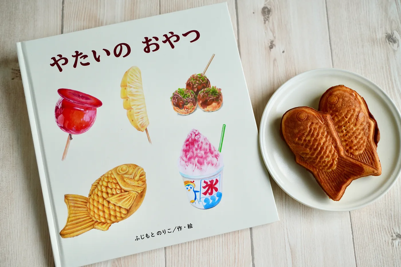 上週朋友來家裡玩,我們一邊喝茶聊天,一邊開箱我買了好久都還沒啟用的小 V 鬆餅機 — —鯛魚燒烤盤,沒想到第一次試做就很成功,兩人肚子裡塞滿了好多條魚!吃著吃著,想到書櫃裡正好有一本去年剛收藏的繪本,裡面也有出現鯛魚燒耶。