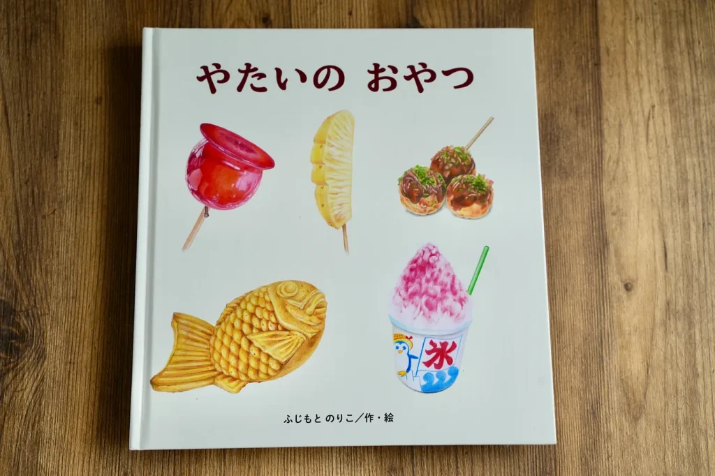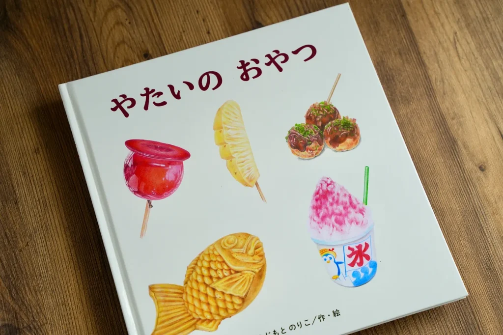 就算是看不懂日文的朋友,應該也能從封面猜到這本書的主題吧!沒錯!『やたいのおやつ』這本書的中文意思是「路邊攤的點心」,やたい(屋台)是指俱有屋頂、屋簷樣貌的移動式攤販,販售的東西大多以食物、玩具、季節性商品為主。
