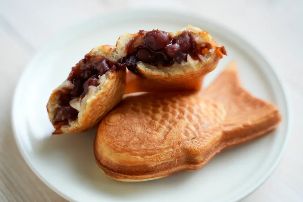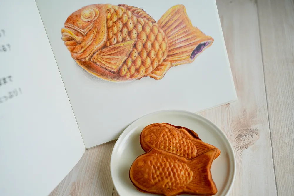 我對書中的「鯛魚燒」(鯛焼き)特別有興趣。它的發源地是在東京的麻布十番(也被譽為老饕的天堂),這種從明治時代開始流行的點心,形式衍生自「今川燒」(紅豆餅),外皮以麵粉、雞蛋、砂糖、小蘇打粉製成,上下外皮之間夾有紅豆內餡,使用鯛魚造型的金屬模具來製作。