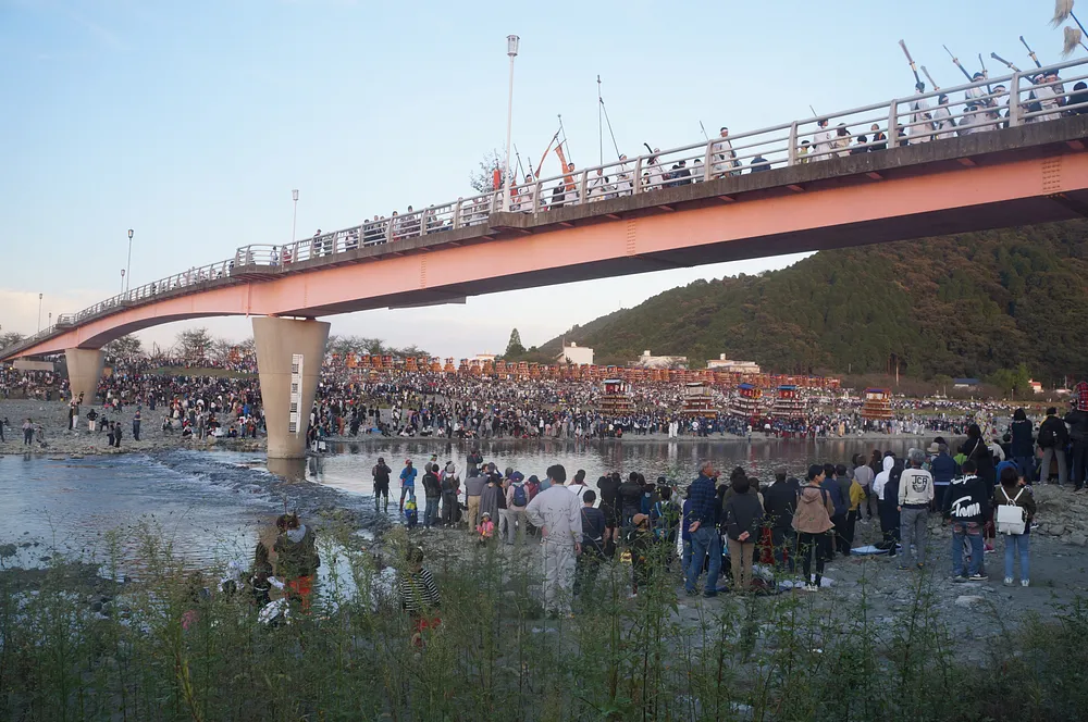 2019 年愛媛的秋季傳統祭典「西條祭」(西条まつり),加茂川河岸聚集許多華麗的花車及神轎