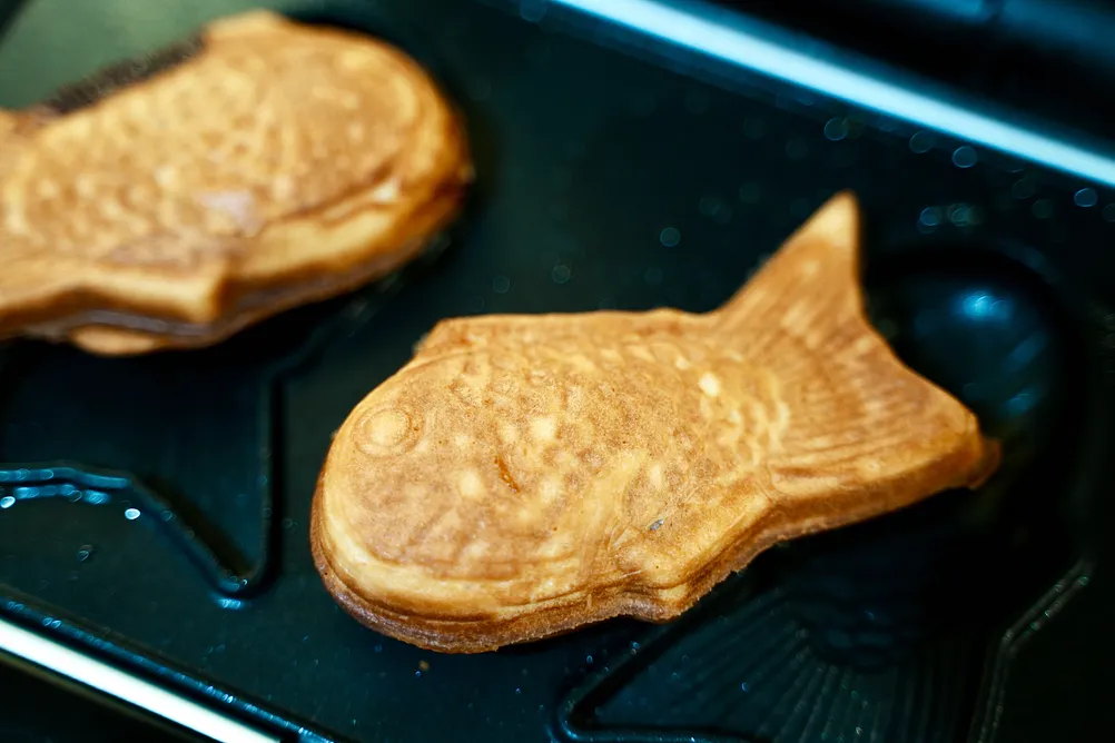 原來是因為「鯛魚」在日本是種昂貴的魚,只有在慶祝時才捨得享用,平常是不容易吃到的。創業於 1909 年的店家「浪花家」特別取其意義,加上「めでたい」(可喜可賀)的諧音,製作成鯛魚形狀的點心,沒想到新鮮有趣的外型加上吉祥的寓意大受歡迎,讓鯛魚燒很快遍及全日本並流傳至今。
