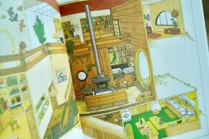 我最喜歡書中縝密的鋪陳,從前後蝴蝶頁可以看到主角老鼠小姐與其他動物們的趣味互動,接著透過「作品集」列表來代替目錄,以一幅幅跨頁呈現不同動物的居所,而且老鼠小姐不只設計房子的外型與格局,連室內裝潢與佈置也通通包辦,這些房子如何符合動物的天性與興趣,並且巧妙地與大自然融為一體,完全展現了創作者的功力。結尾甚至還有一個呼應現正火熱的 Outdoor 生活型態的安排,忍不住豎起大拇指。