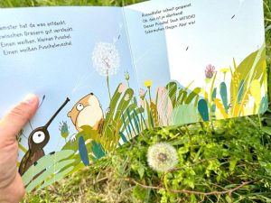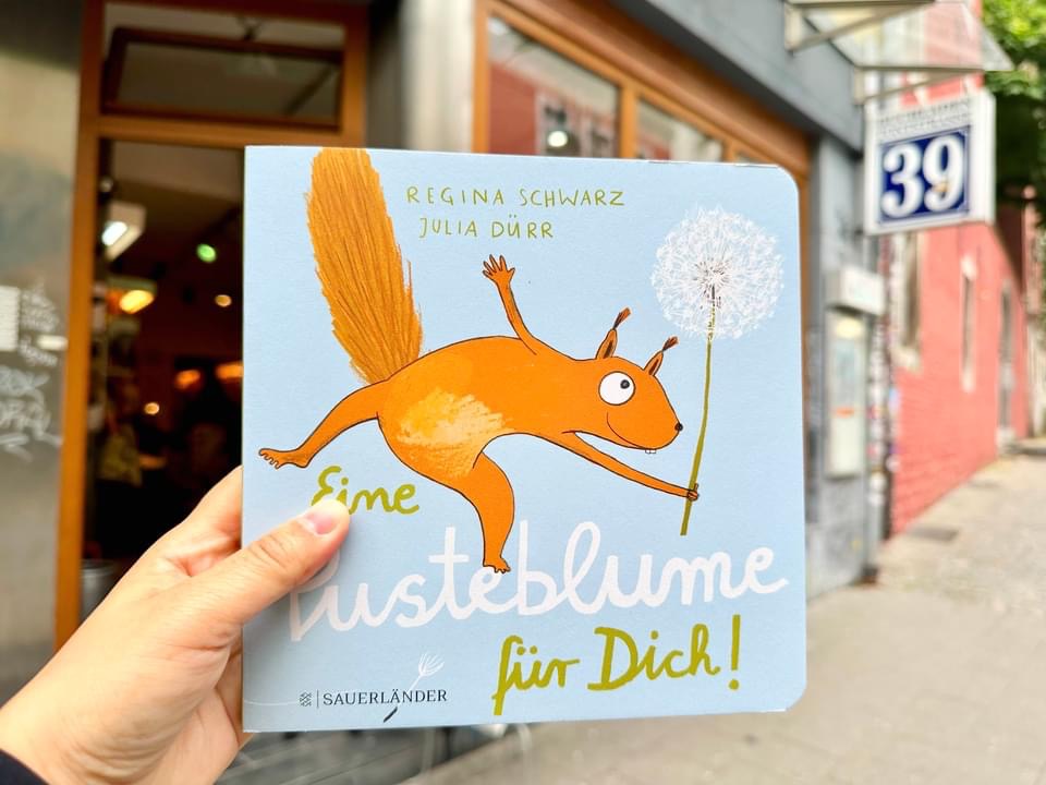 我在附近的獨立書店買到了一本今年三月底才剛上市的德文繪本「Eine Pusteblume für dich!」,中文的意思是「送你一朵蒲公英!」故事劇情滿簡單的,可是很童趣,也相當適合這個時節閱讀。