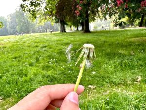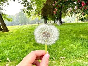 來到德國之後,在戶外走路最開心的一件事就是隨處都可以看到野生的蒲公英,從公園的草地、廣場上的花圃、庭院的角落到森林小徑,甚至連建築物的縫隙都有它們的蹤跡,而且無論花朵或絨球的尺寸都比台灣看到的品種大上許多,幾乎都比乒乓球還要大了呢!