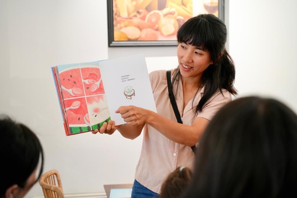當天正好是 Rachel 的登台初體驗,來自台灣與香港的媽媽們帶著他們的小寶貝,一起來聽她說《西瓜游泳池》的故事,共享甜滋滋的西瓜。我和好多家長還有小朋友聊天,是來到歐洲之後第一次和這麼多人用中文說話,看著孩子們衝去角落翻閱繪本,緊緊抱在懷裡拉著媽媽的手去結帳。我內心那種快樂與滿足的心情,筆墨難以形容。
