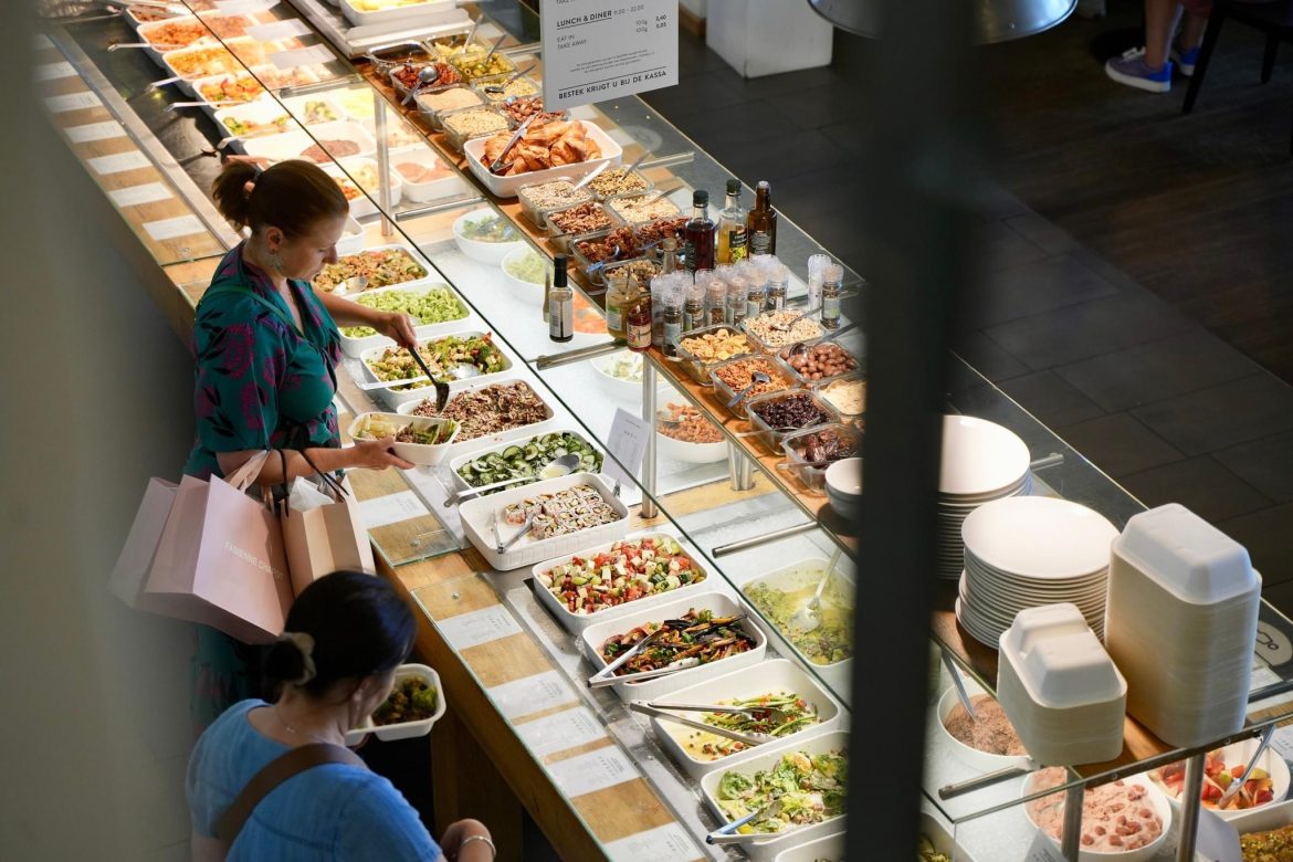 和 Rachel 道別後,我去附近她推薦的一間複合式有機商場「Gimsel」吃晚餐,這裡的蔬食自助餐廳「Spirit」是採秤重計費,真的非常非常美味!我夾了一整盤,有烤雙色地瓜、藜麥沙拉、菠菜貓耳朵麵、涼拌莎莎櫛瓜、香料起司炒飯和甜點,加起來有七種不同的菜色,只要 8.5 歐元。而且商場同時有超市、藥妝店、選物店、藝廊可以逛,如果不是來自當地人介紹,真的不知道有這麼棒的地方。
