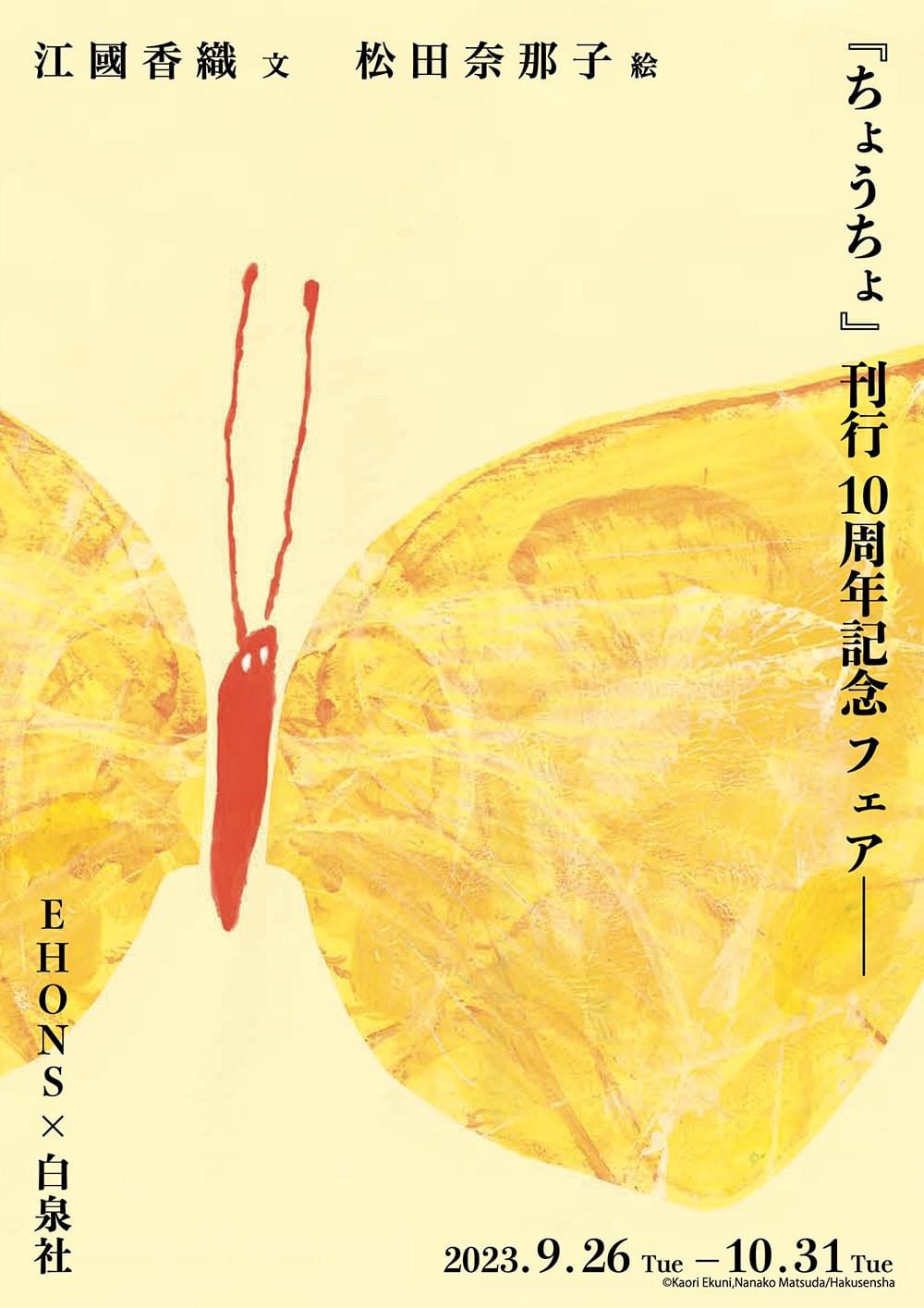 《蝴蝶》(ちょうちょ)這本書今年正好在日本上市 10 週年,出版社特別在東京的「EHONS」商店舉辦紀念活動,推出各種周邊商品。我昨天在查資料的時候,看見這張令人屏息的宣傳海報,心裡想著「哇!這也太巧了吧!」,便想將這個故事記錄下來。