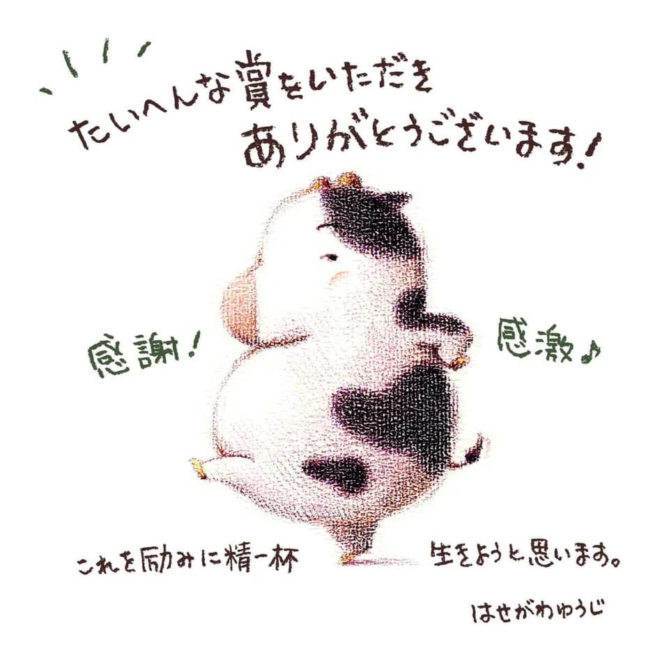 原文版在日本累積銷售突破 5 萬冊囉!不僅如此,它還榮獲「第7回未来屋えほん大賞」,作者長谷川祐次(はせがわゆうじ)特地畫了祝賀插畫表達感謝。