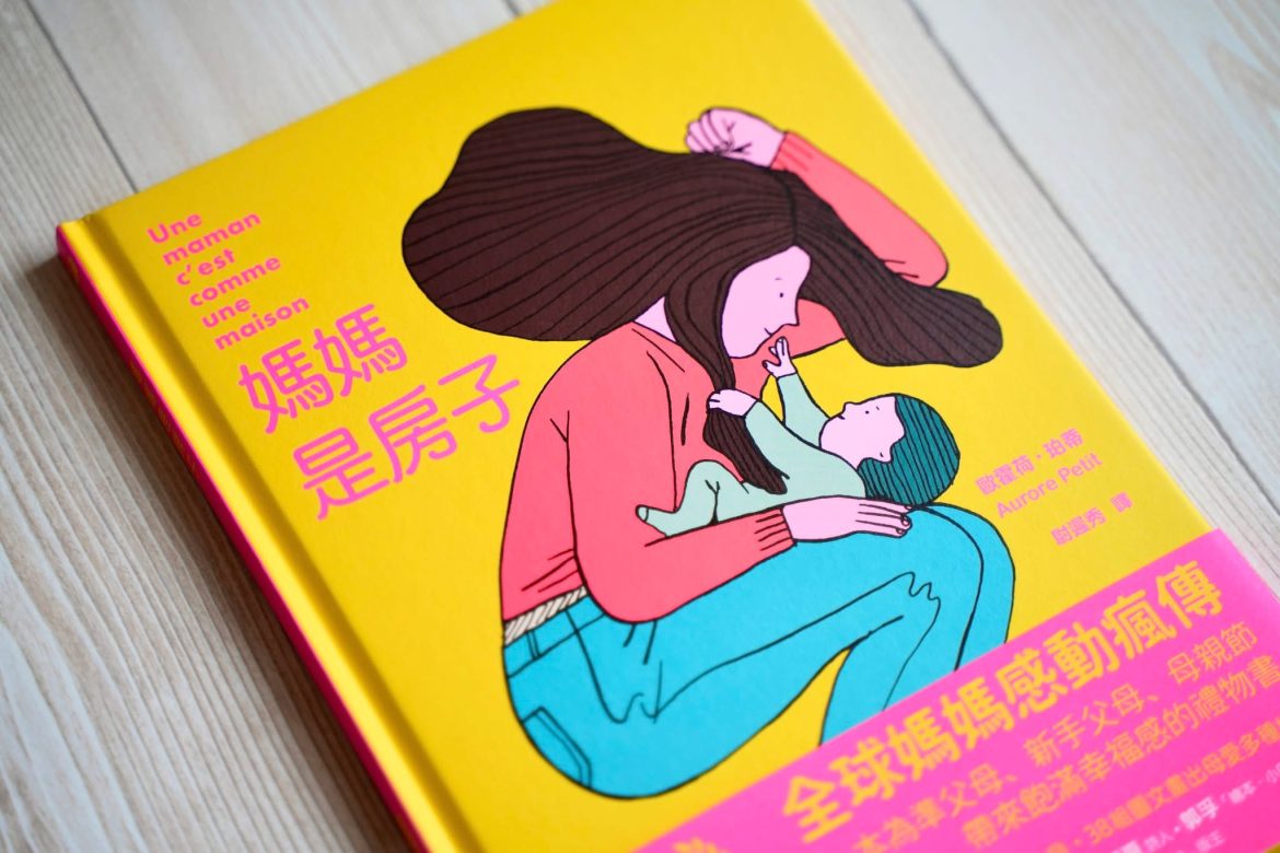 這本書是由 38 組圖文所組成的,第一幅圖描繪懷孕的媽媽躺在沙發上,肚子像座隆起的小山丘,爸爸帶著期待的表情輕輕撫摸著媽媽的肚子,文字寫著「媽媽,是房子」,胎兒住在媽媽的子宮裡,被愛緊緊包覆著、保護著。