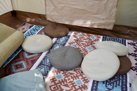 佈置帳篷也太夢幻了吧!(內心大尖叫)外面還有充氣沙發與露營桌椅,休息區非常充足,只要從書車或是外面的書櫃看到喜歡的書,就可以拿到喜歡的位子閱讀。