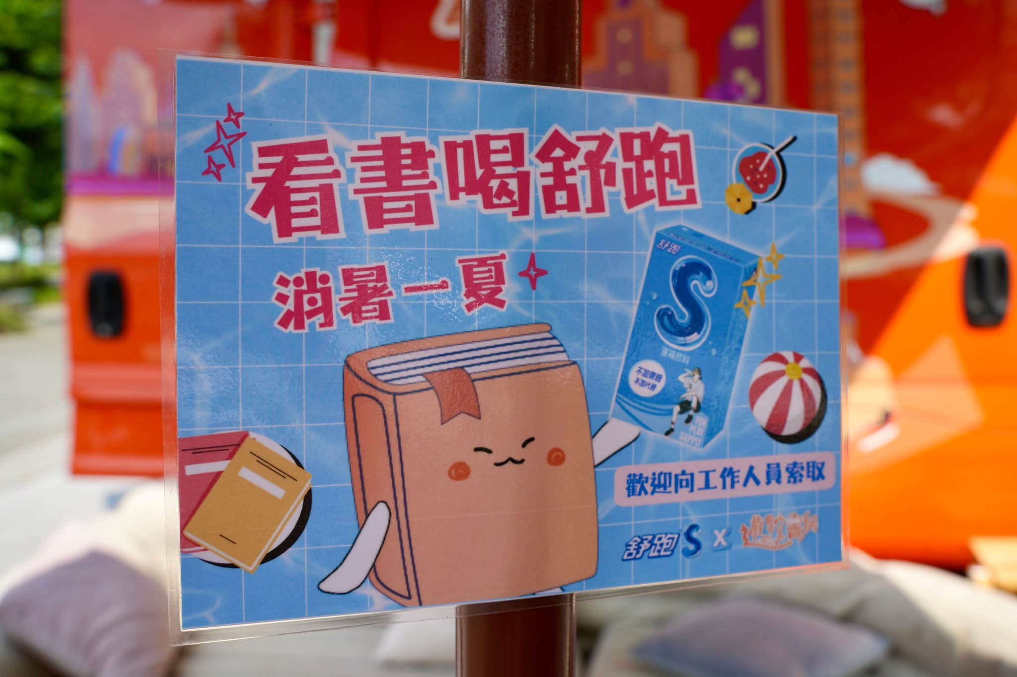 活動有舒跑公司的贊助,一來到現場,工作人員就會遞上一瓶飲料。