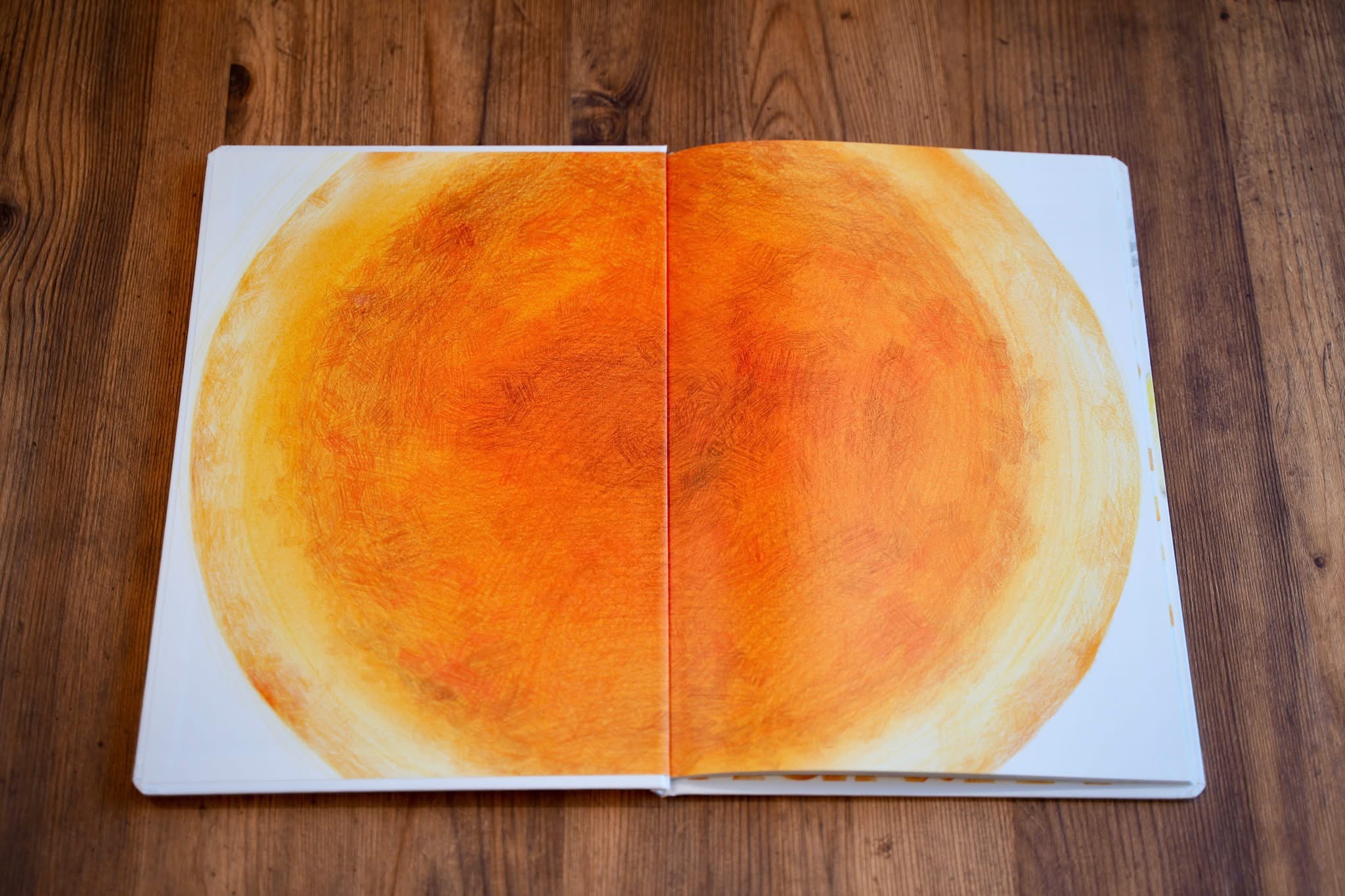 故事描述鼴鼠和螞蟻們合力做了美味的麵包,是個溫暖又甜蜜的故事。照片是前蝴蝶頁,出現好大好大的一塊麵包,就像月亮一樣,令我看得口水直流。