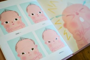 小寶寶哇哇大哭,眼淚大滴大滴地掉下來,大人們手足無措,該怎麼讓寶寶安靜下來呢?當初會從架上拿起這本書,是因為封面上的嬰兒實在太像我們家小魚了,連內頁生氣哭哭的樣子也一模一樣呢!媽媽的內心一秒融化。