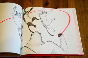 這本也是運用了螢光色的書,封面的設計很有巧思,需要想一下才能猜出是什麼東西。會買這本書是因為,動物們把某個東西來當作跳繩,而我剛好有在蒐集「線」為主題的繪本。它幾乎是本無字書(還是根本就是?)劇情非常有張力,好喜歡。