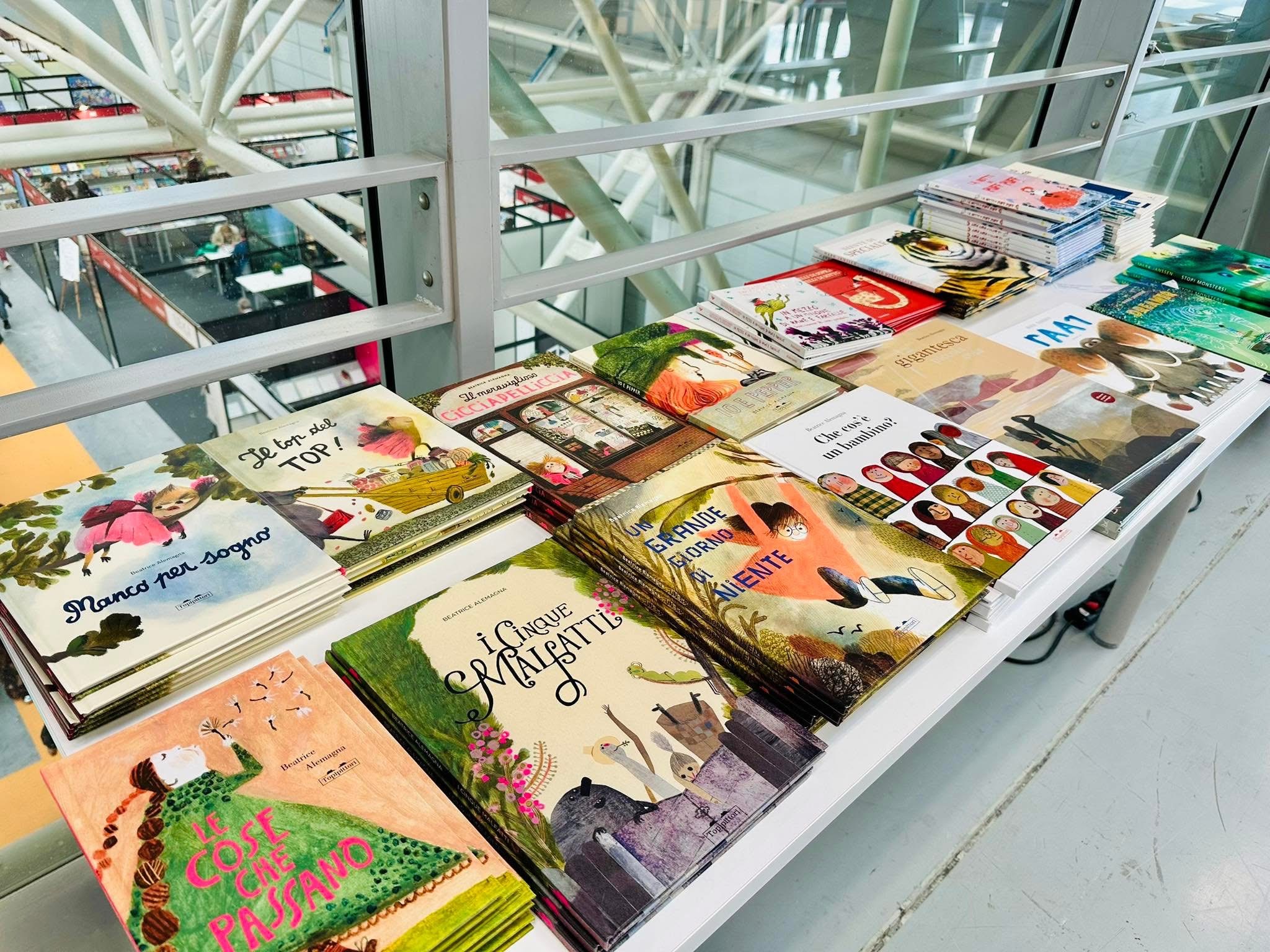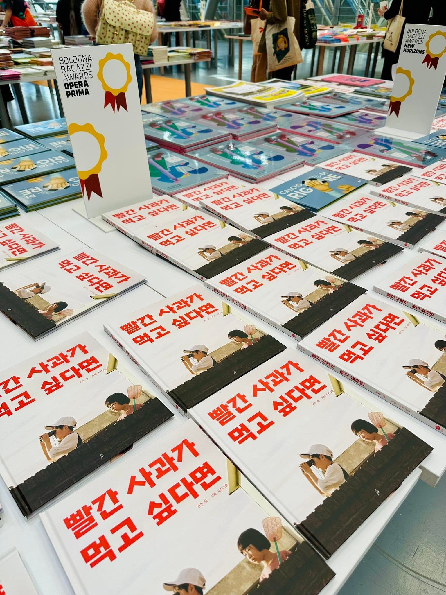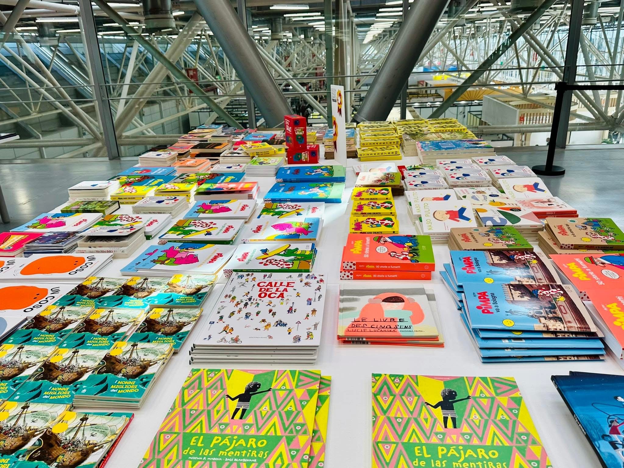 感謝朋友的貼心情報,得知義大利波隆那童書展的二樓有個隱藏景點(?),那就是 International Bookshop,有好幾張白色大桌子,擺滿了各種主題的得獎書、入圍創作者的作品。分類很多元,有無字繪本、幼幼書、圖像小說、漫畫、最佳出版社、各國優秀插畫家、不同年齡階段的讀物,所有作品的封面都能好好秀出來,真是非常棒!