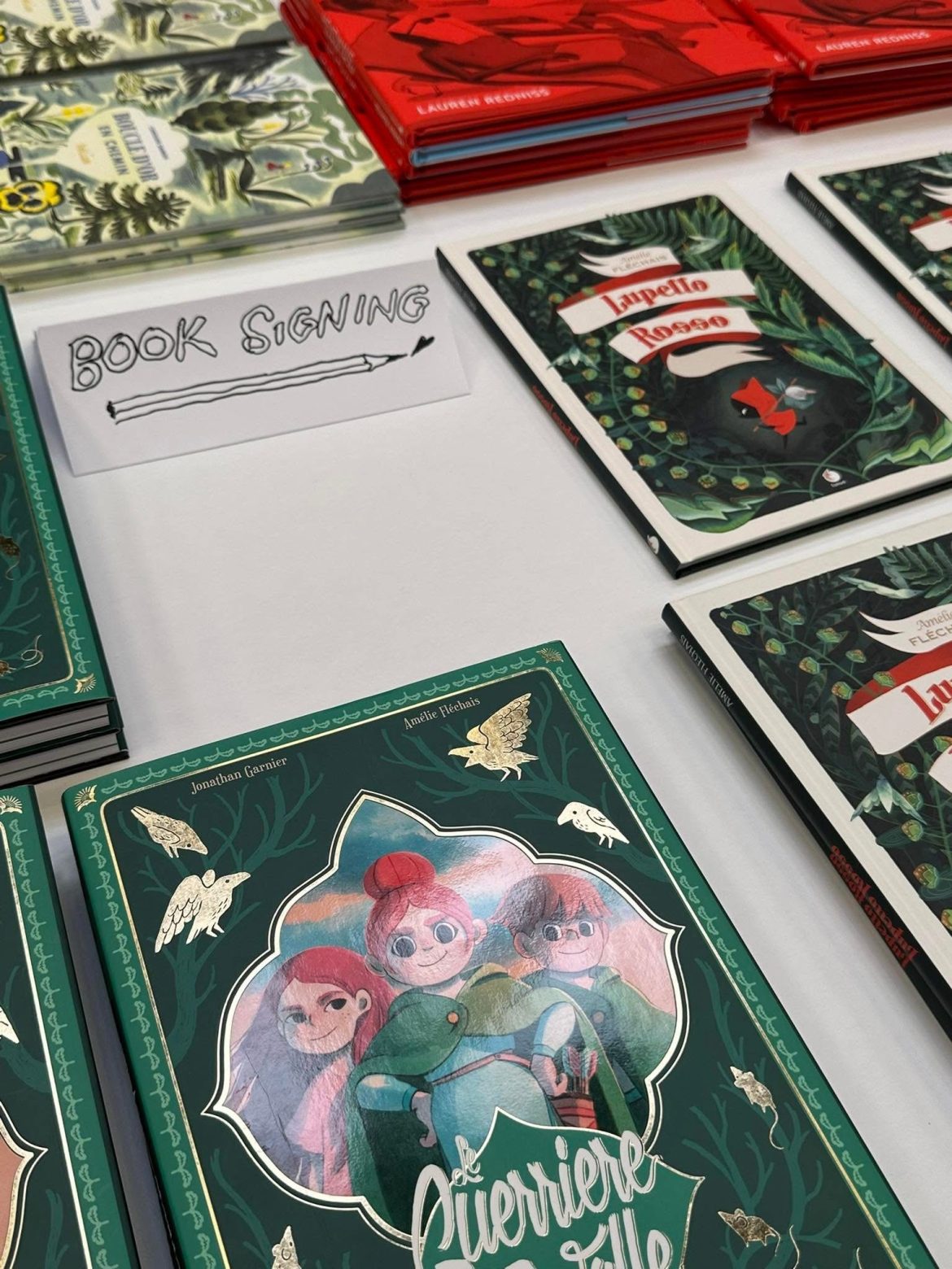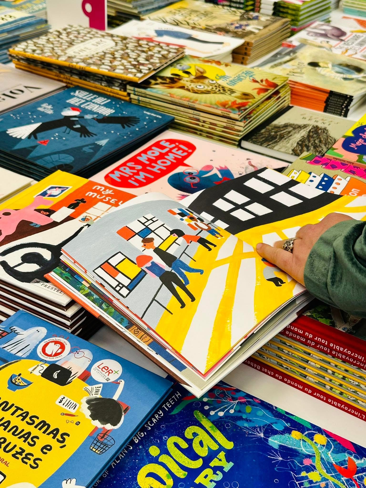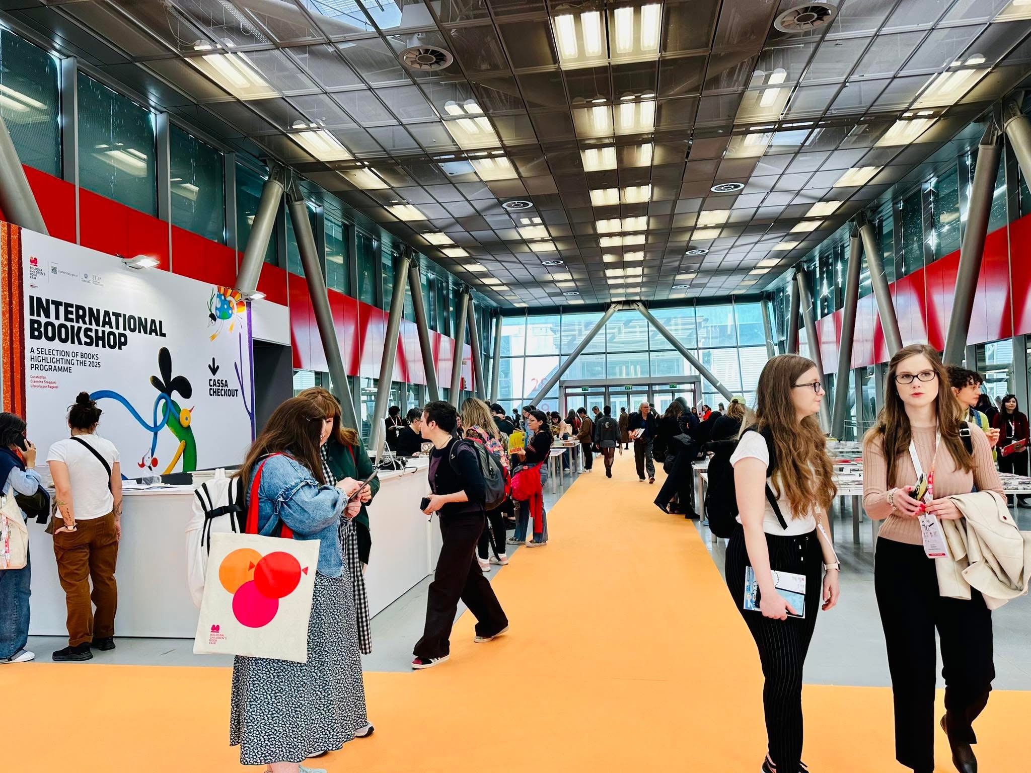 感謝朋友的貼心情報,得知義大利波隆那童書展的二樓有個隱藏景點(?),那就是 International Bookshop,有好幾張白色大桌子,擺滿了各種主題的得獎書、入圍創作者的作品。分類很多元,有無字繪本、幼幼書、圖像小說、漫畫、最佳出版社、各國優秀插畫家、不同年齡階段的讀物,所有作品的封面都能好好秀出來,真是非常棒!