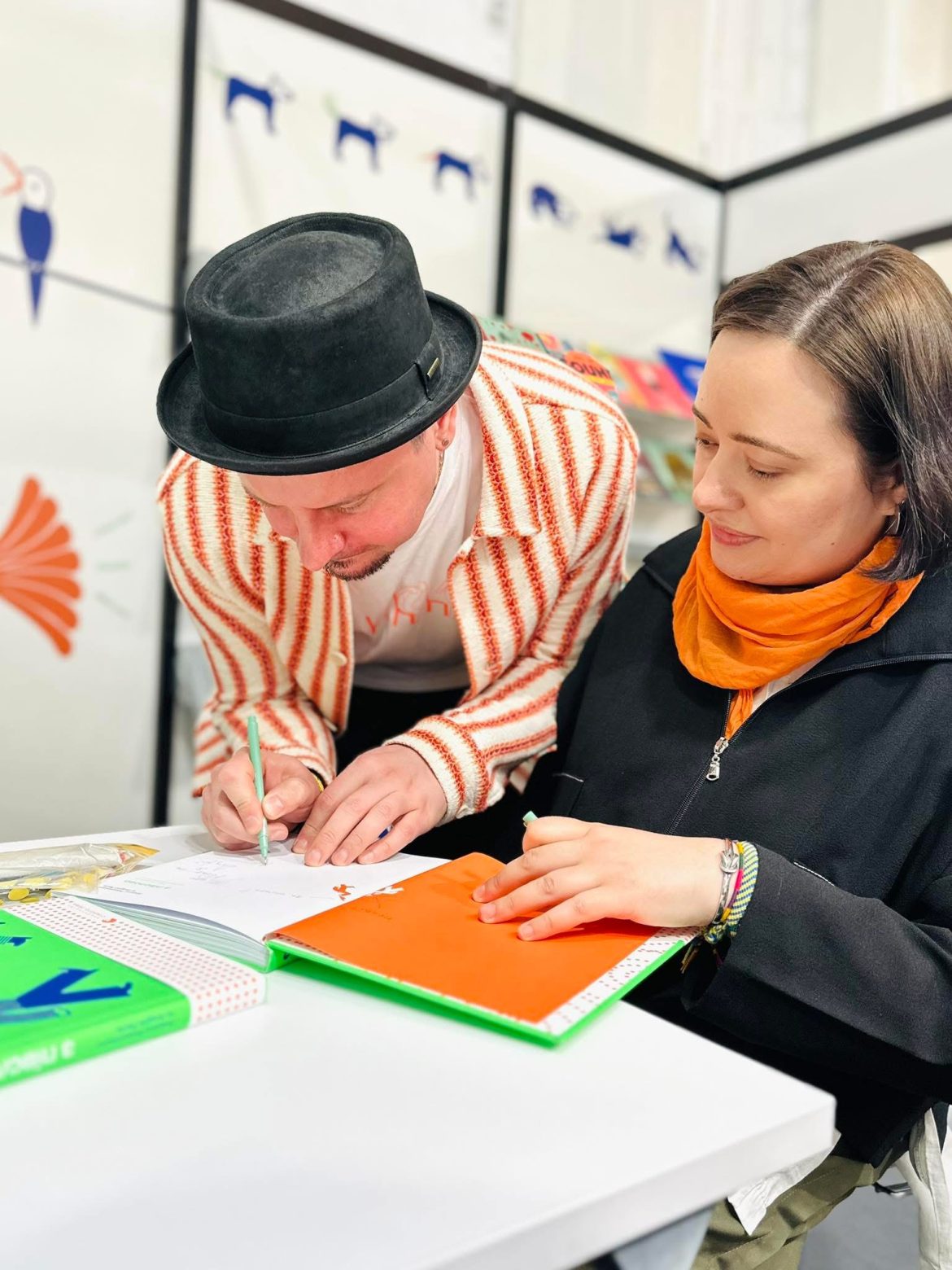 你能說出照片中這對創作拍檔的名字嗎?或是猜出螢光綠色封面的新書是什麼主題?