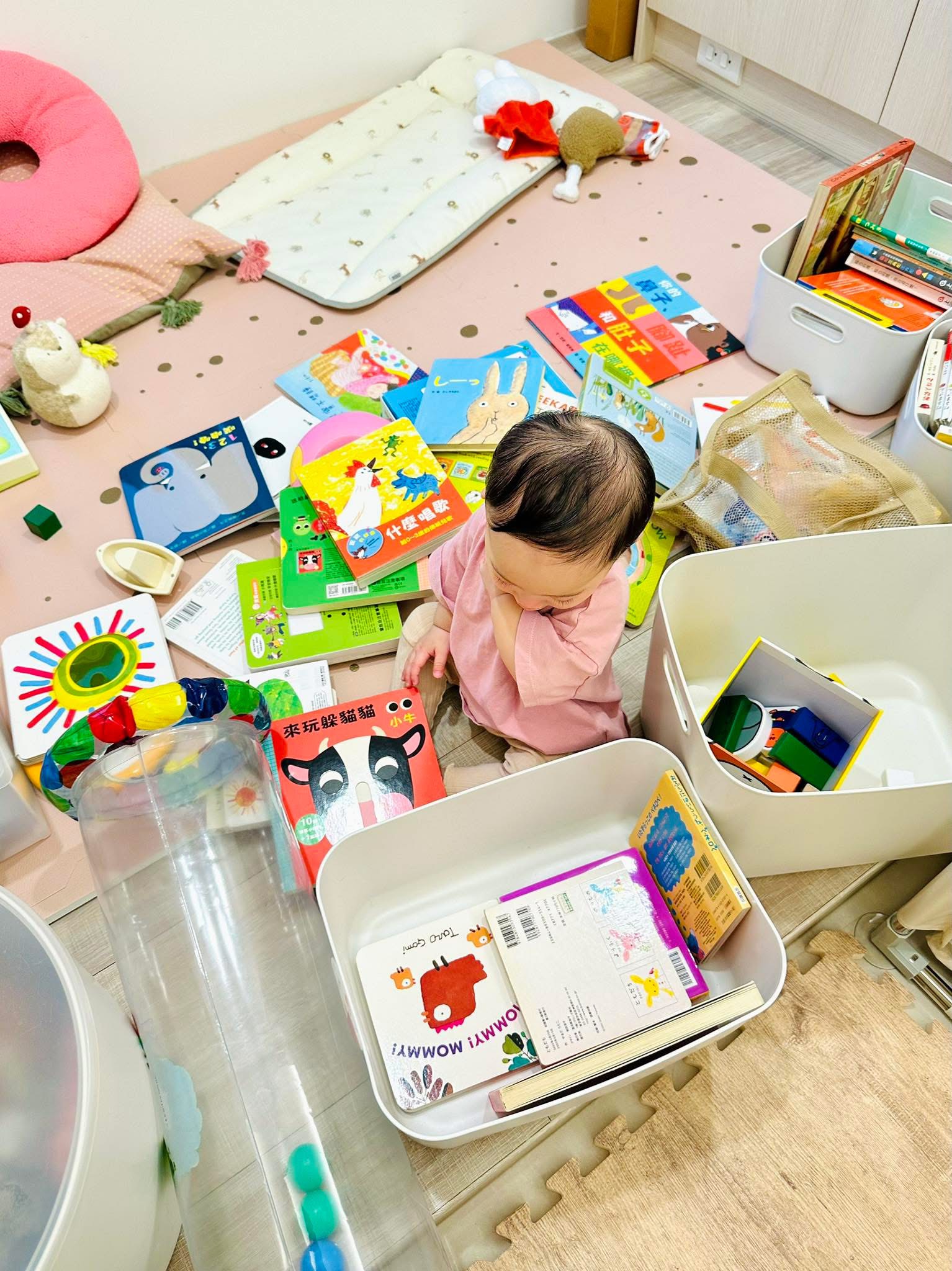 :反覆玩你丟我整理的遊戲,書和玩具一團亂。